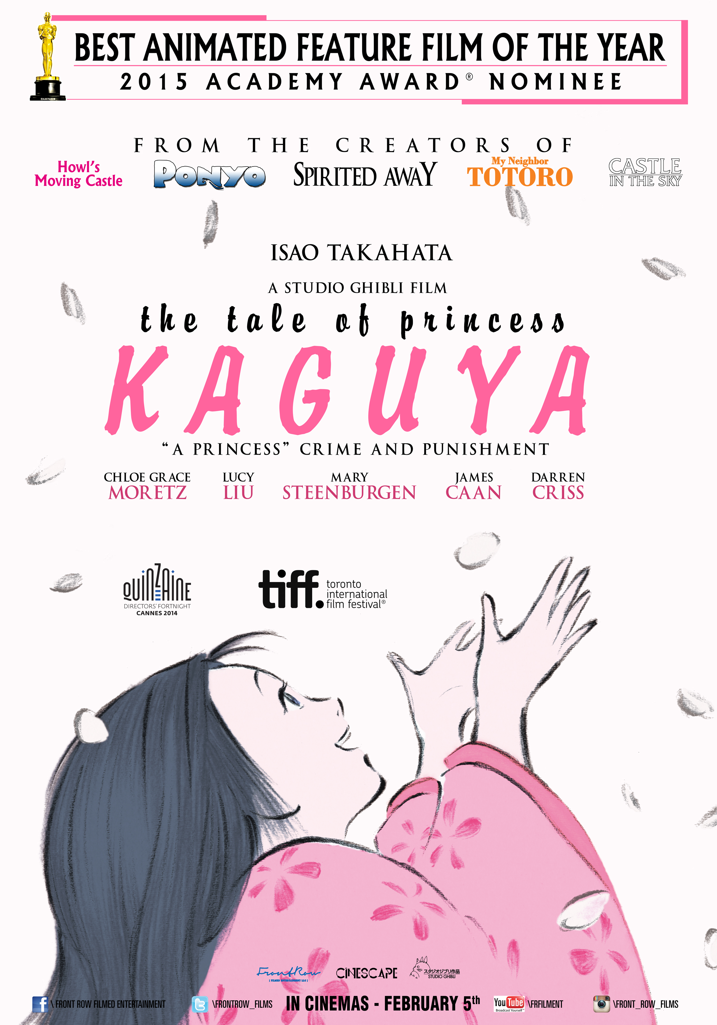 14. The animated images may be enchanting in their watercolor textures and imaginative whimsies, but the emotions underlying Isao Takahata’s The Tale of the Princess Kaguya are earthy and sometimes brutal. The titular princess may literally spring forth from magical beginnings—a bamboo cutter discovers her in a bamboo shoot—and the film’s earliest moments throb with limitless possibilities as this girl sprouts into a woman in seemingly no time at all. But this woman, exuding so much thirst for life, soon finds her effervescence ground underfoot by, well, Japanese traditions: Her “father” may mean well by grooming her for a supposedly easy life of luxurious royalty, but it doesn’t take long for her to find it stifling, almost soul-killing. The tragedy at the heart of Takahata’s film is that its main character is perhaps never given the opportunity to fully grasp what it takes to live on this earth, warts and all, until it is much too late. If this turns out to be Studio Ghibli’s final production, one can hardly imagine a more fitting last hurrah: a work of both awe-inspiring sensuality and hard-earned, worldly wisdom. KF