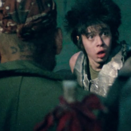 Nearly every scene in Sogo Ishii‘s Burst City erupts into a fistfight, brawl, or outright riot—and every other scene sets up for a melee to come. With shaky camera work, studded leather, loud guitars, and roaring engines all vying for dominance as a handful of characters and a crowd of extras grapple in industrially lit darkness, swinging around blunt objects threateningly, it’s hard to tell exactly what’s going on, but the components at work are telling you everything you need to know. As a cyberpunk film, Burst City has the rare distinction of not relying on exposition to tell you about evil corporations, rival gangs, abused laborers, and rebellious youth. Instead, it just follows the characters as they live through the trials of their age. The problem—or, conversely, the very reason for its cult classic appeal—is that specifics of character and plot tend to get crowded out of the film. We don’t really know anything about the people in the rival punk bands that seem to be at the center of the film; we don’t really know what the yakuza-style gangsters are trying to accomplish or what atomic energy has to do with it; we don’t know where the two guys in sheet metal armor riding a motorcycle fit into things, or why they only communicate by screaming. Burst City is less a story than a spectacle of an alternate world, and those who want to see bikers and rockers spitting attitude and throwing a pig’s head at cops will get to experience that, and much more. Try not to spend too much time asking yourself “what for?”; Ishii’s aesthetic is the point here. Ivan DeWilde