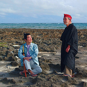 Okinawan filmmaker Gō Takamine’s Hengyoro is an unclassifiable collage. More or less centered on the story of a couple of elderly men who perform what they call “chain plays” (fluid mixtures of film and theatre), the two get into trouble when one accidentally steals a bagged aphrodisiac from their village store. The aphrodisiac looks exactly like flour, right down to the packaging, but for a small label marking its contents as “explicit.” The store owner sends his three wives, a trio of dripping wet women who are apparently some kind of spirits, to cut off the guy’s ear. The old men leave town, but are eventually drawn back to the village, driven either by the circular nature of reality or the allure of its avant-garde scene. (Represented by, among other things, a woman singing while despondent people paint plaster on each other; Bill Morrisonian decaying strips of 8mm film stock, soaked in sea snake soup in an attempt at restoration; and a modernized caveman who wears a feathered hat and digs rock music.) I don’t know how much of this is sourced in folk tradition or myth, possibly none of it, but the pervading sense is of a culture lost in time, of past and present colliding in explicable conversations, and bits and pieces of a lost world adrift in forgotten places. Film and reality fold in on themselves, creating unfathomable mysteries. SG
