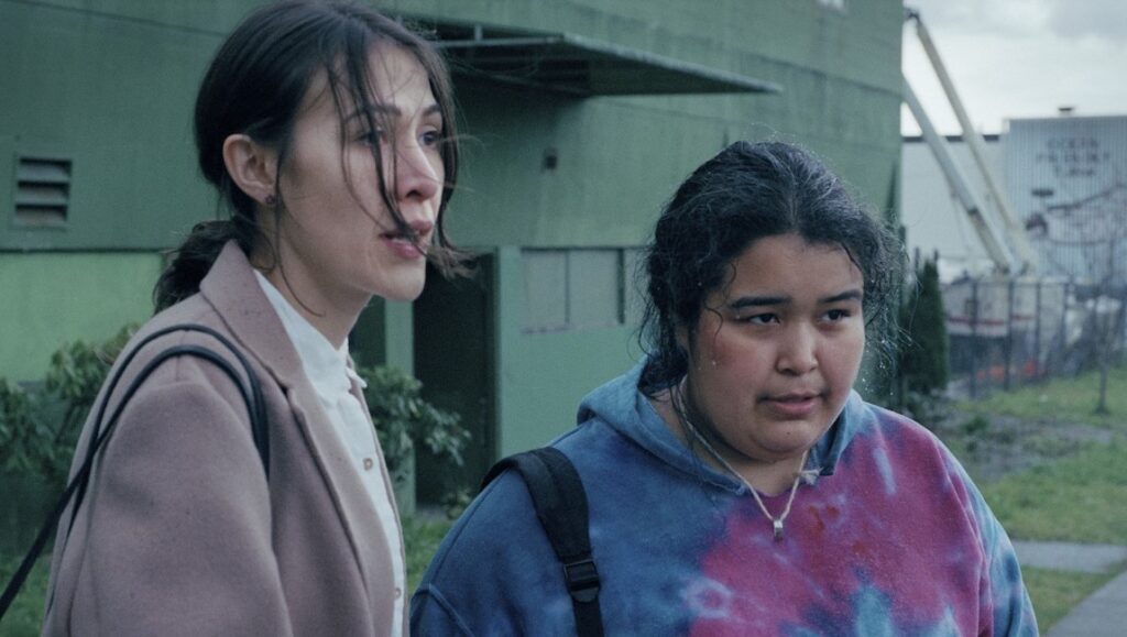 The Body Remembers When the World Broke Open is a less garish film than its prolix title would suggest: instead, co-directors Elle-Máijá Tailfeathers and Kathleen Hepburn have actually delivered a determined study in interruption, understated but never relaxed. The film traces a single day’s intersection in the lives of two First Nations women, Áila (also Tailfeathers), a young professional who’s disinterested in motherhood and riddled with anxiety, and Rosie (newcomer Violet Nelson), an even younger woman, of lesser economic means, who’s pregnant and deeply entangled in an abusive relationship. When Áila finds Rosie shoeless and crying, standing in the rain while her boyfriend threateningly hollers and approaches from across the street, she whisks Rosie away to the haven of her middle-class apartment. From here, The Body… delicately explores the psychology of these two women, both individually and as colliding atoms, their disparate understandings of womanhood resulting in a marathon conversation, often suspended by lulls of tension and doubt, its rhythms echoing the approximate strain or security of any given moment. The strength of the interplay between these two women is made even more impressive through the film’s formal approach: after brief introductory scenes for both characters, The Body… proceeds in the manner of a simulated, unbroken tracking shot (with impressively executed hidden cuts), the camera patient and investigative, digressing with one character here and another there, but always emotionally close. Of the two actresses, it’s Nelson’s presence which is most crucial to this film’s success: her non-professional acting allows for many moving transitions between expressions of bravado and woundedness — and her best moment comes when Áila is briefly absent from the screen entirely. With the camera trained on her face, moments after placing Joni Mitchell’s Blue on the victrola and queuing up “Little Green,” Nelson manages to wordlessly convey a history of pain – not specifically just that of women, or of First Nations peoples, or of the working class victims of wealth culture, but implicitly all of those, and untold other shades of hurt. The Body… suggests that life rarely offers easy answers — and, so, appropriately, the film offers few of its own. And while that does not make for the most complex message, nor the boldest film, it still succeeds as an elegant study in the symbiotic sensations of pain and hope. Luke Gorham