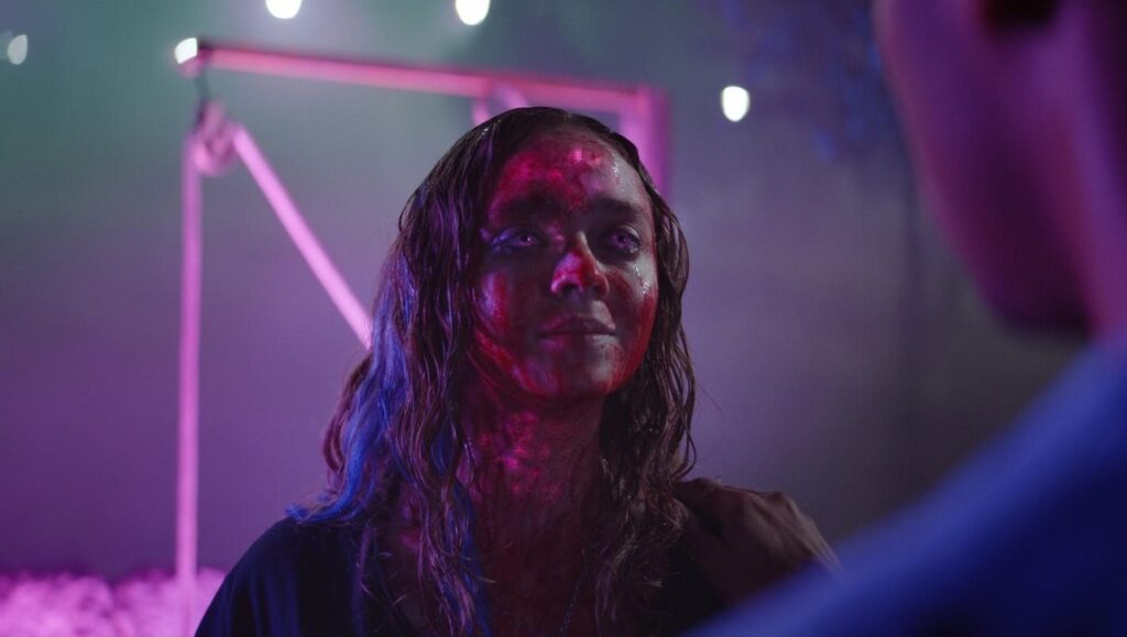 The indescribable, alien color, an obvious challenge to realize on screen, is cleverly manifested: a swirl of pasteled pink and violet hues fog the air, while the meteor itself, and all that it infects, radiates a sinister neon mauve. Other genre flourishes will remind of Alex Garland’s Annihilation (based on the novel by Jeff VanderMeer, a studied acolyte of Lovecraft’s weird horror sensibilities), with temporal and geographic realities unsettled and a disturbed muddling of biological and psychological upset. Yet for all that, the challenge of actualizing such an intellectualized abstraction proves too difficult, and the film instead opts for the more lavish lane of gross-out extremity and a crescendo of mania. But what scans as gonzo on the page is rendered as largely inert retread when it comes to what should be a saturation of expressionist horror. There are moments where Stanley suggests he understands the world he’s operating in, at one point capturing the image of a witchy-garbed Lavinia nobly riding a steed across a lush green pasture, but expectation takes precedence and the idiosyncrasy unfortunately gives way to cheap, unsatisfying familiarity. For a certain audience, Color Out of Space will be prescribed an intentionality it only half earns – which is to say that this was conceived as a cult film, and that seems self-evident. But for those needing more substance than signaling, the film’s obviousness ultimately feels antithetical to the concept of indefinability that it’s ostensibly going for. Luke Gorham