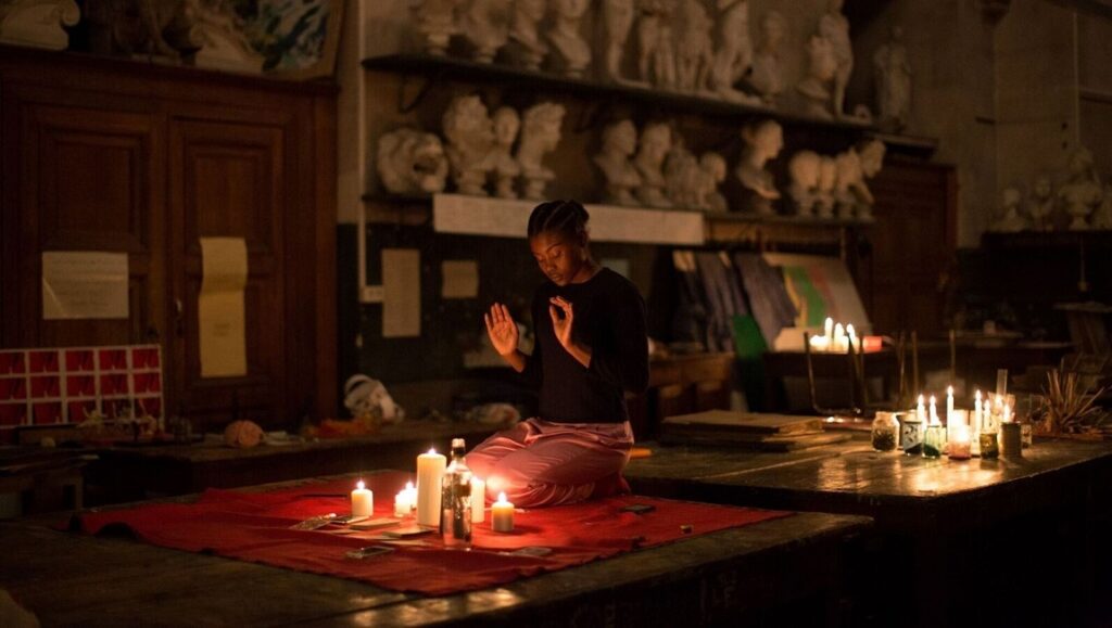 Voodoo, as represented in Zombi Child, is a religion of opposing functions that ties together life and death in a volatile form of spirituality, though it isn’t until the film’s conclusion that this becomes clear to us. Its narrative proceeds by juxtaposing two stories, different in their temporal and geographical setting but which (superficially) unify to present life and death as brought about through the practices of voodoo. One takes place in Haiti in 1962 with the funeral of a man named Clairvius who soon rises again through the power of voodoo to become a zombie, forced to work in the fields even past his death with no mind to give him autonomy. The second situates us in the company of a girl’s sorority at a prestigious all-girls school; one of the members, Fanny, befriends a Haitian girl, Mélissa, who lost her parents in the 2010 earthquake and invites her into their group, soon becoming aware of her connection to the alien religion of voodoo. Until the denouement, we’re necessarily limited in our perspective because of our being tied to the conception of voodoo contrived by the European girls’ brief internet searches.