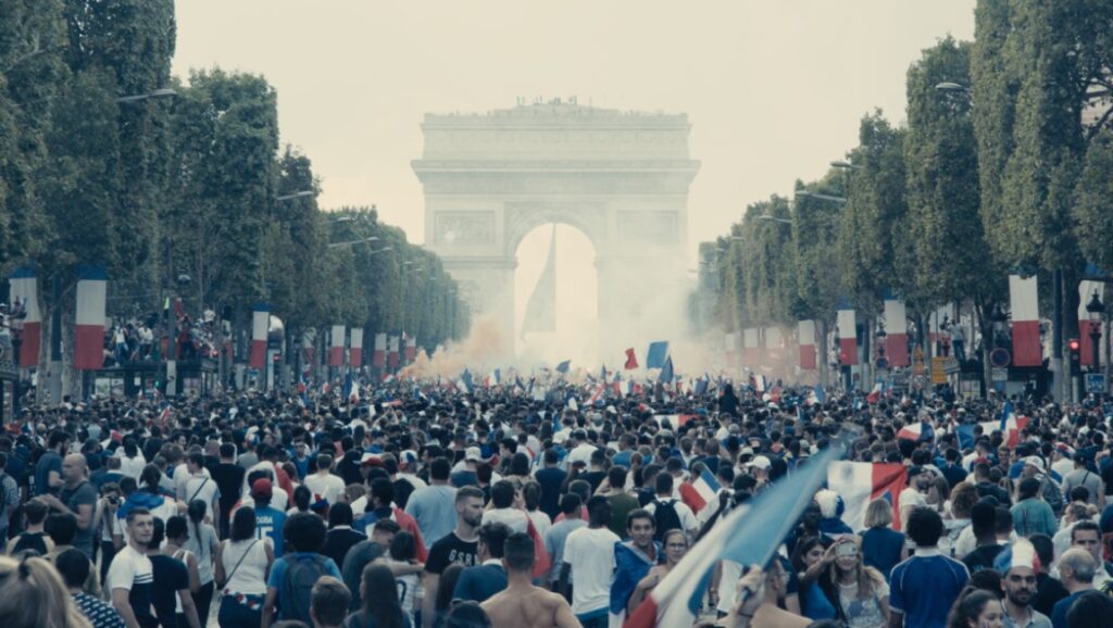 Ladj Ly‘s debut feature may be called Les Misérables, but it’s not an adaptation of either the Victor Hugo novel or the Broadway musical. Rather, it’s a tense cop drama, simultaneously engaging modes of both documentarian observation — befitting Ly’s previous filmmaking experience — and more conventional plotting and characterization. Nevertheless, there is a Victor Hugo connection: the setting is the Parisian suburb of Montfermeil, a major setting of Hugo’s novel, currently a neighborhood with a majority black population of African descent. Inspired by the suburban riots that rocked France in 2005, the film is largely concerned with the potentially explosive tensions between Montfermeil residents and the police. The cinematic antecedents are fairly obvious: La Haine, Do the Right Thing, Training Day. However, Ly doesn’t plunge us immediately into the maelstrom of social strife. Instead, we begin with a much more utopian image, the multicultural mass of soccer fans reveling in France’s 2018 World Cup victory, a raucous celebration in the streets, with the arresting sight of a little black boy proudly wearing the tricolor flag of France as a cape.