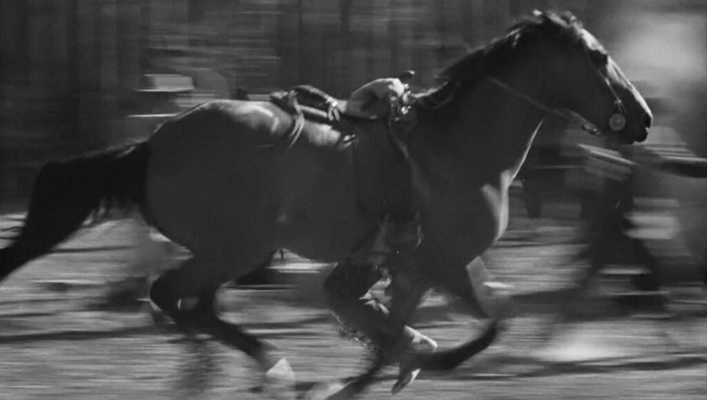 The second chapter of Argentine director Nicolás Zukerfeld’s hour-long cine-essay, There Are Not Thirty-Six Ways of Showing a Man Getting on a Horse, is a fleet, funny, and inventive piece of work. Narrated largely against a black screen, with only the occasional textual annotation or visual illustration, it tells of a film professor’s attempts to trace the origins of a widely cited, inconsistently translated, and possibly apocryphal quote by American director Raoul Walsh. The saga begins with a rushed, bleary lecture, during which the unnamed professor recalls the version given in the film’s title (“There are not thirty-six ways of showing a man getting on a horse”), but soon encompasses a series of dead-end Google searches, desperate emails, excerpts of moldering magazines, and a whole trail of writers and critics (including Edgardo Cozarinsky, David Bordwell, Louis Skorecki, and Serge Daney, to name but a few). It would be too much to call this obsessively detailed, ouroboros-like account a Borgesian ficción, but for its wry tenor, quasi-autobiographical double-backs, forking narrative lines, and headlong momentum, it can nonetheless be situated within a broader tradition of Argentine literature.