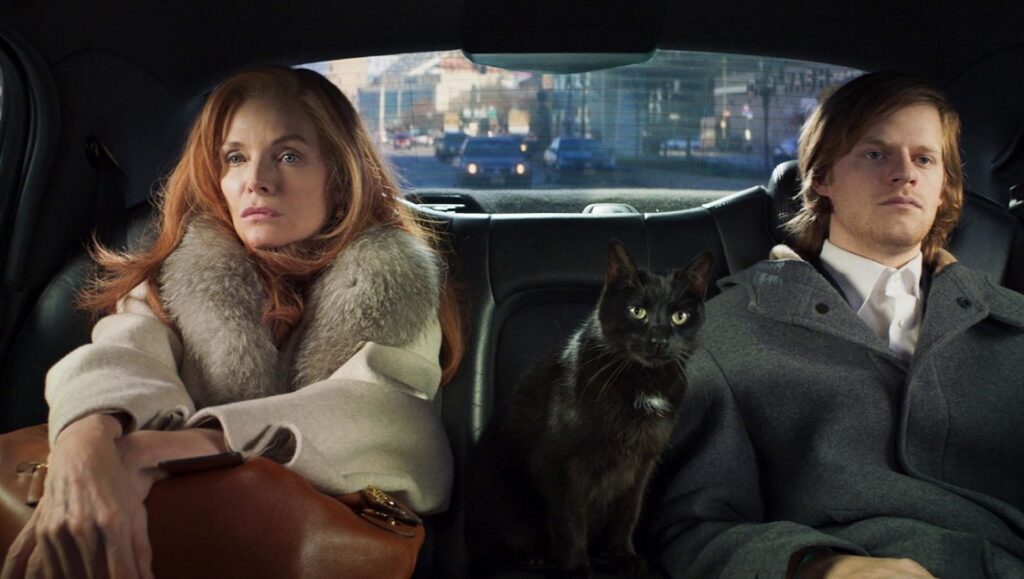 In adapting his story of a New York socialite (Pfeiffer) who flees to Paris with her somnambulant son (Hedges) after losing her deceased husband’s fortune, DeWitt seems to be under the impression that because his novel traffics in the alien ways of both the upper-class and the supernatural (don’t ask), his characters are allowed to speak like they literally stepped off the page. It’s an obnoxious affectation, done no favors by a cast who seizes the opportunity to give in to their worst instincts. Pfeiffer goes for caricature, all breathy sighs and dagger eyes, stretching out each syllable in every word to its breaking point; Hedges opts for zombie-mode; Letts seems happy just to be doing voiceover work as the cat, his screen time limited to that of a corpse. Yes, you read all of that correctly. They were clearly given no coherent direction by Jacobs, who is working in a key that can best be described as Wes Anderson minus the charm, wit, or visual creativity, crossed with Scoop-era Woody Allen.