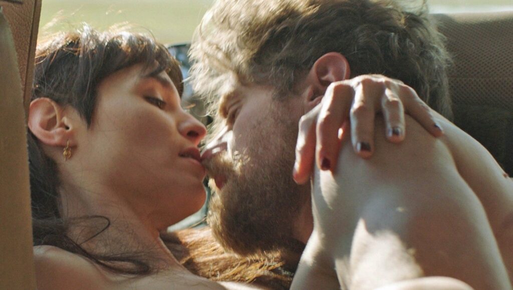 A scene of dogs playfully frolicking in the mud precedes a graphic sex scene between our protagonists, who are of course animalistic in their passion and abandon. In another scene, a shot of a dog getting its teeth cleaned is paired with a moment where said female hipster digs at her own gums and asks male hipster if he sees anything out of the ordinary. And when an elderly pet owner dies, his dogs briefly licking his lifeless corpse before losing interest, female hipster is shown crying over an unknown animal they accidentally ran over with their hipster van. Not enough? Well, there’s also the scene where an older woman applies a salve to the open wound of her dog, which whimpers in pain, while the same woman later applies the same salve to the wounded knee of female hipster, who is brought to tears by the moment of human tenderness and connection. Meanwhile, male hipster pisses on his own open wound in a graphic medium-shot, naked genitalia exposed in all its glory. It’s almost like…we’re all animals, you know? Or, is human empathy what separates us from the beasts that surround us? Perhaps we are the real beasts, with nary a care for anyone but ourselves, and certainly not for any four-legged friend. After all, isn’t existence nothing if not a never-ending cycle of death and renewal?