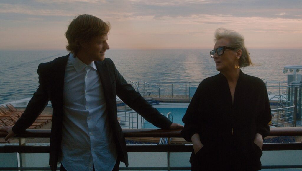 If there is any affinity to be found between Steven Soderbergh and Olivier Assayas, it’s in their shared ability to turn the economics of filmmaking to their advantage, to leverage each project into a veritably Situationist endeavor — or, in other words, to recognize “the game on top of the game,” as Bill Duke puts things in High Flying Bird. In this respect, Let Them All Talk and Non-Fiction are the directors’ closest points of contact, each film using its book publishing milieu to craft a self-consciously modish comedy about the commodification of speech. For his part, Soderbergh convinced an accomplished fiction writer (Deborah Eisenberg) and a cast of seasoned pros (Meryl Streep, Candice Bergen, Dianne Wiest) to come onboard the Queen Mary 2 for a semi-improvised shoot across a single trans-Atlantic passage. The result is a marvelous (and marvelously photographed) comedy of inarticulateness, one that doesn’t just play on a writer’s stereotypical fear of speech (exemplified by Streep’s vapid, self-absorbed novelist, Alice Hughes), but also turns improvisational dead air into a virtue. The ocean liner setting further connects the film to a tradition of Hollywood cruise ship movies from One Way Passage to The Lady Eve, and thus to a long lineage of seafaring cons and pros. What Let Them All Talk understands, though, is that the eloquent, eminently literate hustlers that once populated those films — not to mention Soderbergh’s own work, from Out of Sight to the Oceans trilogy — are, in our data-driven present, a defunct class of criminal. Though once the glamorous backdrop of romance and adventure, the cruise ship is now just another outpost of neoliberal capitalism, where sparkling dialogue and elegant cons have been replaced by awkward probings, demeaning exchanges of business cards, and ersatz entertainment. In the age of the tell-all confessional, both words and personal relationships have lost their former value. Increasingly, every person knows they’re being played, plays accordingly, and just avoids talking about it. Ultimately, as at this film’s end, the winners are those who, consciously or not, avoid acknowledging that there’s a game to be played at all. Lawrence Garcia