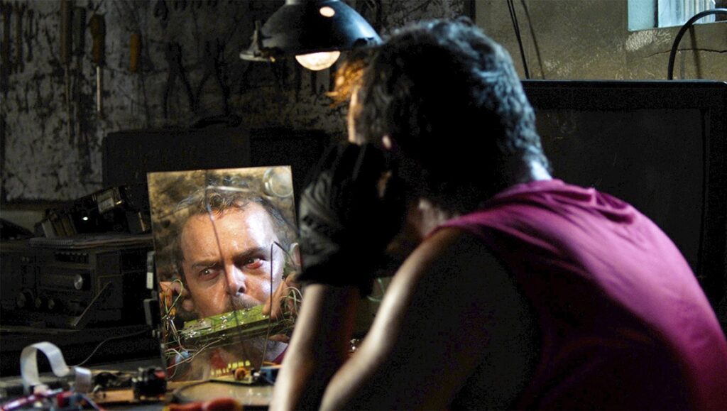 The sheer ambition on display is admittedly admirable, but it is hard to determine what Pinheiro is saying on any one topic. Power as a corrupting force? The enslavement of the working class? The disparity between the haves and the have-nots? Nature vs. technology? All get a workout, but none in a way that is profound or meaningful. For every scene that works — such as a choreographed dance number in which a handful of mechanics start moving robotically in sync with engine noises while swigging transmission fluid — there are three others that fall flat simply because of their heavy-handedness. Uno’s uncle bluntly states that technology has been bred into our DNA ever since man first picked up a stone and used it as a tool. “Are we human? Or are we simply machines, and these devices our offspring?” he states while gesturing toward a car. His character proceeds to literally devolve throughout the film, taking on the mannerisms of an ape, until he is simply beating his chest and grunting at film’s end. This idea is clever in theory, but to what purpose? That technology has stopped evolution dead in its tracks, humanity simply willing victims enslaved to its machines? That doesn’t really gibe with the subplot where advancements in agriculture ultimately save humanity, which would imply that technology can in fact be used positively, but it is obvious that no sort of careful thought or effort was put into this other than, “Wouldn’t it be cool if a woman stamped the word ‘Dead’ on her boyfriend — who is a car, mind you — with menstrual blood?” Large chunks of this film also appear to be missing, connective tissue necessary to explain the escalation of events, especially in the movie’s final third — yet there is a lengthy scene where two characters robotically discuss the virtues of phosphorous, so thank God for that. Perhaps more could be forgiven if even Carro Rei’s edginess didn’t feel quite so secondhand. Hey, Pinheiro, Cameron Diaz fucked a car in The Counselor, you’re not shocking me with your car-nal passions. Somewhere, a cheetah named Raul weeps.