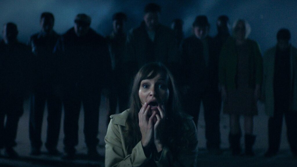 The film concerns Riseborough’s Laura, a mother still shaken by the recent death of her daughter, Josie. When a new family moves into the other half of her family’s duplex, she takes a maternal interest in their daughter, Megan. On several occasions, Megan insists that she’s been “here before,” whether she is referring to places like the park Laura took Josie to or the cemetery the other girl is buried in. It’s only a matter of time before Megan is more openly suggesting that she is Josie, pushing Laura to an emotional breaking point. This results in what is largely an enervating domestic drama, like a series of confrontations between Laura and Megan’s mother, and a few nightmares for Laura. These nightmares are the most compelling part of the movie, suggesting the supernatural evil child picture it should have been. But there’s nothing supernatural about Here Before and its twist ending doesn’t allow even a sliver of tantalizing ambiguity. I won’t spoil the twist, but in the interest of grounding the film in definite reality, Gregg offers an explanation for Megan’s behavior that is so contrived and preposterous it almost loops around to being funny.