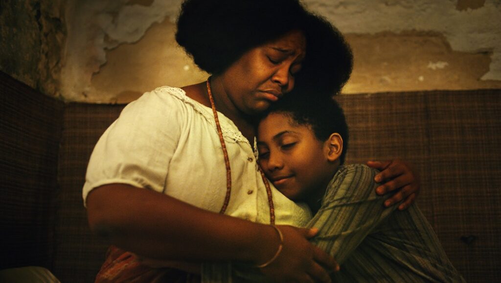 All the Dead Ones reflects the longevity and accomplishments of both Dutra and Gotardo’s artistic endeavors; in perfect sync, the directors have concocted an expansive historical epic of thematic and narrative complexity, gracefully paced and filled with clean, textured compositions. Set in São Paulo, approximately a decade after slavery was abolished in Brazil, All the Dead Ones is a gothic tale that concerns itself with the creeping decay of a once-powerful family of white landowners (a mother, two daughters, and an absentee father), and Iná (Mawusi Tulani), the woman they once enslaved. The latter now raises her son João (Agyei Augusto) on the outskirts of the city while waiting for the return of her husband, who has long been away searching for work. Eventually, Iná finds herself pulled back into the orbit of these former slave owners when they come to her in desperation, offering to pay her to travel to São Paulo and perform a ritual of African origin for the family matriarch, whose declining wealth has plunged her into a deep depression. Unable to turn down the money, Iná agrees, though the arrangement only grows more ominous as she’s reintroduced to the very unwell family, haunted and perverted by their colonialist dependencies.