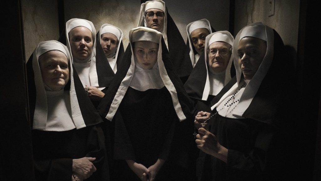 It begins with the title character, a nun who might be possessed by a demon. The church calls in somewhat disfavored priest Father Donaghue (regular Reece collaborator Ben Hall), partly because he’s one of the only trained exorcists, but mostly because they want him to fail so they can kick him loose. The old priest brings a young priest, of course, enthusiastic Ben (Jake Horowitz), full of youthful integrity and faith. That’s the general setup, and while the first half of Agnes takes place in the hermetic, often bizarrely humorous world of the convent, it’s the second half that gives the film its resonance. After the exorcism, Agnes’ friend Sister Mary (Molly Quinn), herself still reeling from the loss of a child and discombobulated by the events’ witnesses, leaves the church. Much as the sisters are isolated from the outside world within the convent walls, now Mary is merely differently isolated from that same world by her status as a former nun and by the pain she’s tried to escape. The meaning and solace she sought in faith has been erased.