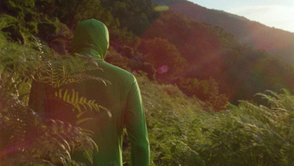 Like the aforementioned Trypps films, The Invisible Mountain is something in between landscape and psychedelia, the quest depicted in Mount Analogue paralleled here by an extensive hike across North Eastern Europe that takes Russell and his primary subject, Tuomo Touvinen, from Finland down through Belarus. Shadowed by a Sonic Youth-sounding noise band whose live performances punctuate the long, durational stretches of walking footage, Russell captures this footage himself, serving as his own camera operator (he subscribes to the Rouchian idea of ciné-trance), and so the journey of his protagonist becomes both literally and metaphorically his own. Aware of this dynamic, The Invisible Mountain ultimately moves toward conflict between artist and subject, bringing Russell on screen to stoke doubts about the sustainability of the project, raising questions about its authorship and invoking the untimely passing of Daumal as an ill omen. It’s here that Russell once more complicates our understanding of his film, blowing away the distinction between fiction and reality so it becomes challenging to determine where dramatization begins and ends. The Invisible Mountain poses an idiosyncratic vision for literary adaptation that estimates the original poetically while demonstrating its contemporary relevance. Brought to life with an avant-garde sound design and green screen reappropriation, the world that Russell conjures here is appealing in its accessibility, organic yet totally, convincingly fantastical.