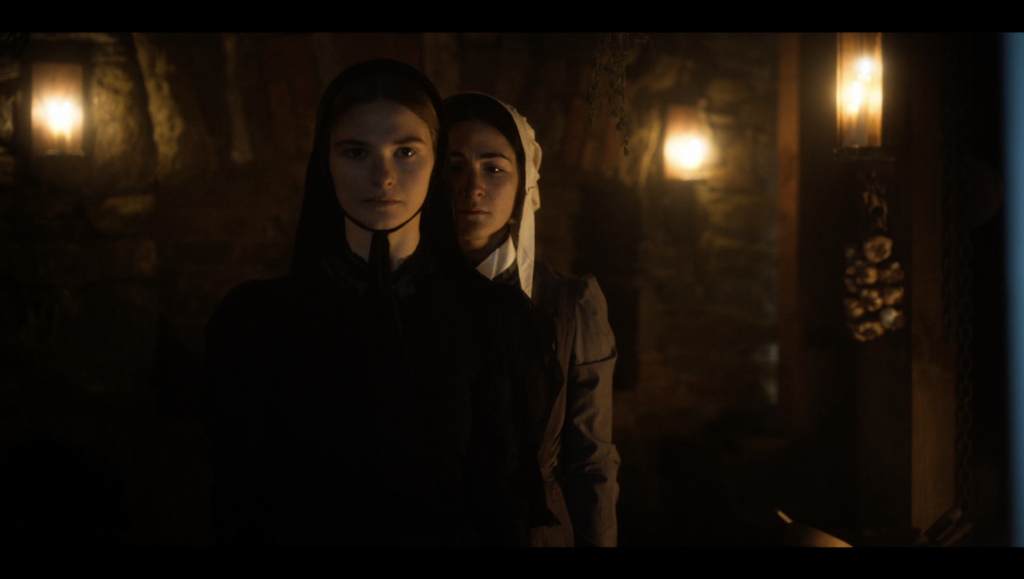 But despite the overfamiliar setup and easy calculus of the narrative, The Last Thing Mary Saw isn’t necessarily damned upon conception; the period trappings offer plenty of opportunity for building an effective horror milieu, as does the thematic potential inherent to genre-fied depictions of religion’s symbiotic relationship with evil. The problem, then, is that Vitalleti’s film does nothing to distinguish itself, unless you count its utter solemnity in its favor: the images are frequently cast in near pitch-blackness, action almost entirely occluded; a not insignificant number of line deliveries here are mumbled and/or whispered to the point of indecipherability; and the dialogue that is audible is noticeably in love with its own old-timey, highfalutin character. It’s a vibe, to be sure, but one that’s more oppressive than anything else. There’s a whole lot of candle-lit sequences and a bevy of low-angle shots presumably deployed to articulate some (nonexistent) ominousness, but like everything else here, it feels entirely prescribed — unimaginative, verbatim execution in fire-and-brimstone-style foreboding. Vitalleti could have at least short-circuited the film’s narcotizing effect had he bothered to mussy anything up, but his shiftless approach seems to trust that the film’s particular setting will make up for its clear deficiencies of personality and texture. The final result of all this is something of a contradiction: there’s no denying that there’s a vision here — it would be near impossible to remain this willfully gloomy and sedate without intent — but it’s one that takes its melange of influences (The Village, The Witch, The Crucible, The Virgin Spring) and flattens them to the point of rendering the material comatose. Pardon the excessive cuteness, but Mary should just feel lucky this film wasn’t the last thing she saw.