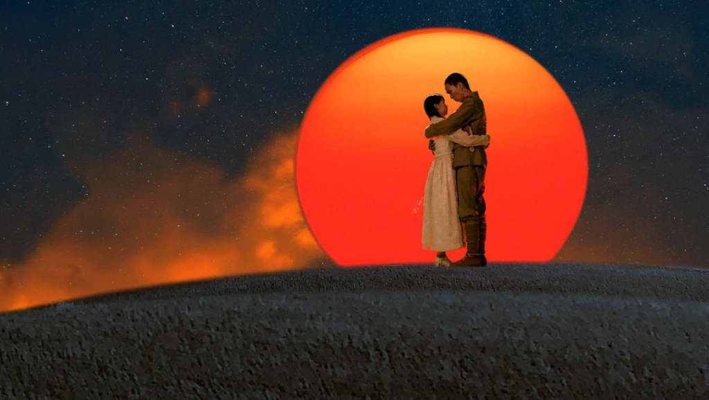 Undoubtedly, many of Obayashi’s cinematic and historical references here will be difficult to grasp, but they are far from the film’s central concern. Instead, the director employs brisk editing, fast-paced camera angle shifts, trippy color saturation, and his familiar chaotic imagery and cartoonish tonal atmosphere to immerse us in his final creation in much the same way that his teenaged protagonists here find themselves absorbed within the horrors and absurdities of the past. Labyrinth of Cinema suggests it’s through these cycles that we can “build the future,” but Noriko also states that it’s an effort “to find ourselves.” Obayashi likely thinks the answer is both, and in that spirit he never tries to conceal his visual gimmicks, instead proving eager to reveal cinema’s artifice as not just a method for reclaiming imagination in a despairing world but also as a means to effect our realities from within. It’s what Obayashi always sought to accomplish with film, and so it’s fitting that in his final work he has chosen to depict himself as the strange old pianist who decides to live in the movie forever, crouching over a piano, playing the music of peace toward eternity.