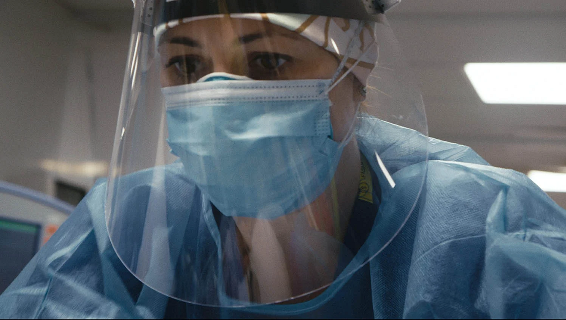 The compartmentalization that contemporary documentary tends to engender — divorcing thematic intent from aesthetic misguidedness — is undoubtedly exacerbated in the time of the COVID-19 film. Considering everything that has transpired since March 2020, the prospect of viewing Matthew Heineman’s The First Wave is reasonably and understandably demanding, a reiteration of the unknown capabilities of a virus that is still running rampant, all telegraphed from within Northwell Health’s Long Island Jewish Medical Center in New York during the first few weeks of the pandemic. It’s a never-ending avalanche of new patients, of resorting to last-measure equipment, of rushing between rooms as varying alarms go off. Heineman occasionally cuts to drone shots of a depopulated New York City: an unnerving contrast of portent-laden stillness and frenzied, exhausted activity.