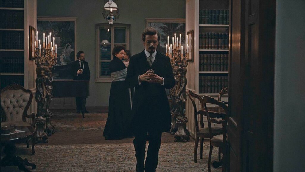 Cristi Puiu’s fifth fiction feature, Malmkrog, represents a further entrenchment in the oeuvre of perhaps the Romanian New Wave’s most dedicated portrayer of claustrophobic incidents and the web of personal interactions that can result in such confined spaces and at such long durations. Malmkrog represents something of an extreme in both regards: his first period film, it is set entirely in a luxurious, secluded manor in fin de siècle Transylvania and runs a full three hours and twenty minutes. These further extended stretches of time also contain little of the life-and-death drama of The Death of Mr. Lazarescu, the methodical killings of Aurora, or the deft family interplay of Sieranevada. Instead, Malmkrog confines itself almost exclusively to the philosophical, ethical, and ecumenical debates of five aristocrats, which principally cover those two inevitably intertwined constants in any empire: war and religion. But far from an arid exercise — ironic, considering the film’s foundations in Puiu’s prior staging of excerpts from Vladimir Solovyov’s novel War, Progress, and the End of History: Three Conversations, Including a Short Story of the Anti-Christ at an acting workshop in Toulouse that was later compiled into his Three Interpretation Exercises (2013) — Malmkrog emerges as uniquely cinematic, as much in Puiu’s sense for blocking and motion as in the words and tone that are adopted over the vast bulk of 200 minutes. Split into six discrete segments, the film is careful to ensure a continuity of rigor and playfulness while varying its approach: the first segment is taken up mostly by a 44-minute long-take, which vacillates between static, stately frames and sudden pivots to catch the change in positions of each participant in the conversation, while two of the other segments are shot in individual close-ups as the speakers sit at a dinner table, cutting constantly with a marked literalism.