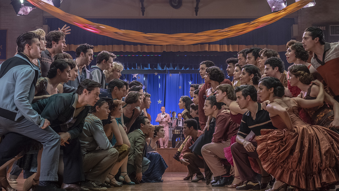 Of course, mitigating the lead actor’s wack factor isn’t the why of the film’s success, only the first cleared hurdle, and indeed Tony Kushner proves Spielberg’s most essential ally in justifying the existence of this remake. The playwright/screenwriter’s apparent operating procedure in approaching the material is to presume subtext where text already existed — it’s not as if there was much nuance to the original — and so has helped construct this West Side Story as a kind of supertext. It’s hardly subtle — appropriate, perhaps, for a musical conceived as Capulets and Montagues, but with racism — but it works here to speak to a more specific, resonant cultural psychology (never more apt than it feels in 2021; it’s no accident Spielberg chose to make this film now). In this West Side Story, street wars are waged over disappearing turf, bulldozed by gentrification and capital, stamped with a weeks-away expiration date; and yet tribalism, for these young men, is both self and security, more important than the promise of a tomorrow that offers only further disintegration of the myth in their minds. Elsewhere, as Maria, Rachel Zegler wonderfully mingles youthful naivete with stubborn determination, playing her as a young woman contending with a toxic cocktail of external influences, and clarifying her character beyond the simplicity of her Shakespearean origination. Even in the film’s archest flourishes, there exists this commitment to an expanded, if heightened, realism: in making would-be gang-rapists of the Jets when Anita comes to deliver Maria’s message to Tony, Kushner gifts Anita’s actions with some semblance of psychological legibility, rather than leaving them as the mere inevitability of tragedy. (In other words, as InRO staff writer Patrick Preziosi previously put it, “it truly feels as if life exists beyond the music.”)