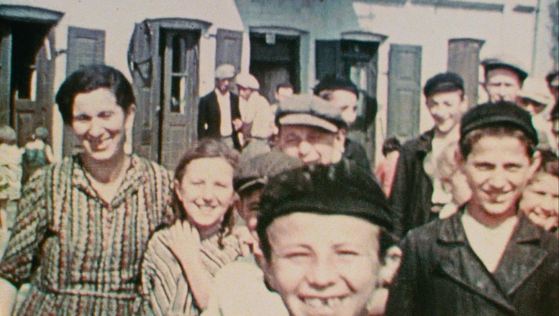 In 1938, David Kurtz traveled from New York to Europe with his wife and three friends. Their gallivanting lasted six weeks and involved sightseeing in numerous countries: Holland and France, Belgium and England, Switzerland and Poland. Equipped with a brand new 16mm camera, Kurtz shot 14 minutes of black-and-white and Kodachrome color film, three of which were of a small, predominantly Jewish town in Poland called Nasielsk. Bianca Stigter’s Three Minutes — A Lengthening begins with this exact footage, and no sound is heard beyond the hum of a projector. The images are incredibly ordinary: everyday people out in the streets, many of whom are excited by the novelty of a camera, which is no different than what’s seen in several other films from the early 20th century. After these scenes end, it’s revealed that this is more than documentation of a fun vacation; it’s some of the only existing footage of one of many Polish towns destroyed in the Holocaust.