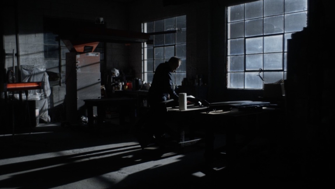 That being the operating mode, there’s virtually no story here to synopsize, as Taormina instead scribbles a series of potential narrative threads around the film’s margins through cryptic, privileged moments. The opening credits play over an extreme close-up of a rotting ear of corn; the camera then begins languidly panning across dark living rooms, empty foyers, and basements, rendering these familiar, lived-in spaces almost alien. A young man furtively applies makeup while alone in his bedroom, while an older man preens in front of a mirror, obviously still proud of his aged physique. An elderly woman nods off in her kitchen, while another shot follows a family dog as it traipses around the house. There are no establishing shots, no recognition of when we are leaving one home and entering another. It is instead a sort of mosaic, occasionally interrupted by recurring shots of a police cruiser prowling the streets with its spotlight on, the bright light source beaming into homes through half-closed blinds. Another scene finds a man trying not to fall asleep behind the wheel of his car; the automobile drifting toward a median creates an immediate tension, a fissure in the otherwise calm mood.