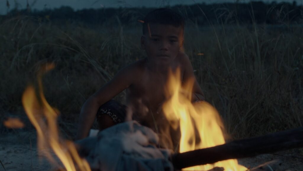 Beginning with a series of cryptic vignettes that play out against the lush forests of a small rural village, we are introduced to an unnamed transient, a weary, older man played by Yannawoutthi Chanthalungsy. He scavenges parts from a rusted-out old scooter bike, selling them piecemeal to a local junker for small change. Do weaves small details into the proceedings that reveal we are sometime in the future; food comes in shrink-wrapped packaging, sleek jets fly overhead, and transactions are made via bio-digital implants just barely visible under Chanthalungsy’s skin. It’s clear he lives a solitary existence, barely speaking to anyone other than the dementia-riddled old woman who runs the noodle shop. Then, a few things begin to happen simultaneously; the old woman disappears, then turns up dead, seemingly at Chanthalungsy’s hands, while a young woman begins appearing just behind him as he walks the dirt road from his shack to the village square. There’s also a little boy who sits with his mother selling vegetables, and whose abusive father occasionally appears to berate the pair for not making enough money. These various strands proceed concurrently, Do cross-cutting between them, before it is ultimately revealed that the young boy is actually Chanthalungsy from 50 years in the past. The spectral figure that has been following him is actually a ghost, and her presence acts as some kind of guide linking the future to the past. The scenes with the young boy are, then, functionally flashbacks, albeit ones that the now older version of the boy can interact with. In classic Ray Bradbury fashion, Chanthalungsy discovers that he can communicate with his younger self, but in doing so winds up changing the future — or, technically, the present — in unknowable ways.