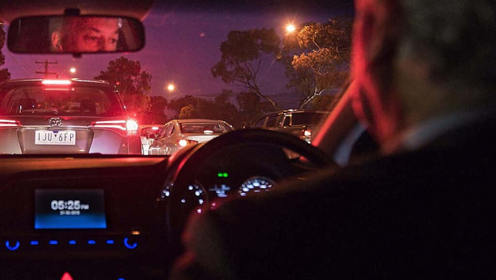 The rare English-language debut film of recent years to achieve unequivocal greatness, David Easteal’s The Plains takes old Kiarostami-inspired notions of cinema — as a series of repetitive car rides — and blows them up to a three-hour length. The audience remains in the backseat of a car commuting home from work, a passively observing passenger, for nearly the film’s entire runtime. Middle-aged lawyer Andrew (a retroactive self-portrait by the actor Andrew Rakowski — also the car’s driver) isn’t much more active in shaping his own life. As conversations unfold with his wife over the phone or with his carpooling younger coworker David (Easteal, presumably also “playing” a version of himself), we witness (and perhaps take on some of the baggage of) the inner life that can unfold when you try and find variations in a looping routine. His mother’s slow death from dementia, and the resulting need to have to take the same trip home every day so he can pay the bills, are what keeps him perpetually car-bound. His sympathetic fellow traveler wants to share in this act of burden-sharing via stories and anecdotes, and the two help each other ease their loads for a while. (David’s own issues are more oriented toward his romantic relationships.) We’ll never know for sure if Andrew fully succeeds at chipping away at his weights, but there’s a sort of freedom and spontaneity to be found in the camera being locked into the seemingly strict form of this commute’s backseat, the traffic and weather changing slightly and offering both viewers and commuter something slightly different to view with each passing day. One of the film’s two most poignant moments could only be achieved within a car, and the other only by getting out of it. The former finds Andrew sharing a song with David via the car speakers, and it’s the simplest way of using music to connect with others: a song title reminding you of a specific person. The latter finds Easteal switching from his unmoving static setup to a drone camera that moves in every direction, finally finding the middle ground between Andrew’s desire for freedom from his burdens and the need to maintain life’s more profound and personal connections. We take a flight across the titular region (set in the suburbs of Melbourne, Australia), and the camera settles on the previously unseen faces behind the conversations and music, the final missing pieces of the puzzle. — ANDREW REICHEL