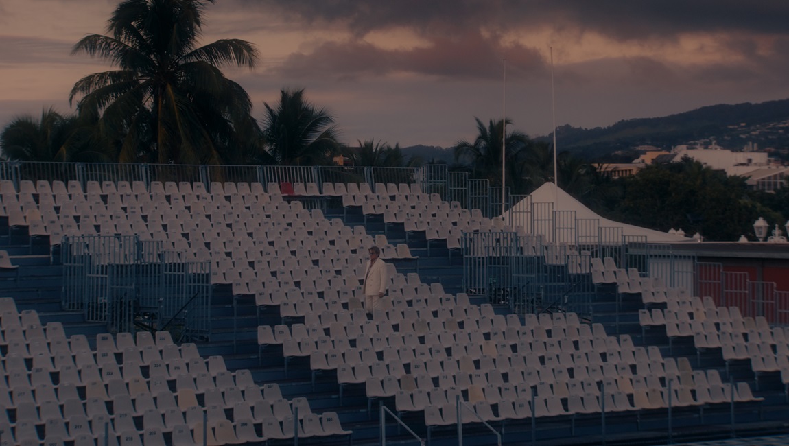 The stakes of Pacifiction are reduced to specters beyond the horizon. Nuclear testing, a program established by French Polynesia’s colonial masters but withheld after opposition from both foreign governments and indigenous activism, is rumored to be back, dressed in whispers and then in the crew of taciturn seamen led by their unnamed admiral (Marc Susini). Morton’s, a nightclub seemingly removed from its elemental surroundings, becomes their haunt. For the High Commissioner, the mysterious De Roller (Benoît Magimel) whose first name eludes us, their motives and movements appear increasingly slippery, as do those of the local actors with whom he consorts, coerces, and compromises. Just as the kingmaker’s privilege is steadily denied him, however, so is his phantasmic presence made more transparent. “I’ll watch from a distance,” he informs the performers mounting a cockfighting dance, with an air of affability dispensed by default to virtually all his interlocutors. Positioned both as the benevolent face of a difficult legacy and a figure behind the scenes pulling off a cosmic balancing act, our hero is, in effect, neither. His impotence, staggeringly at odds with the violence which marks the dance, only blooms as the island’s lush, languid rhythms infiltrate the film’s sound and landscapes. The negative of its postcard pictures is beautiful and terrible torpor.