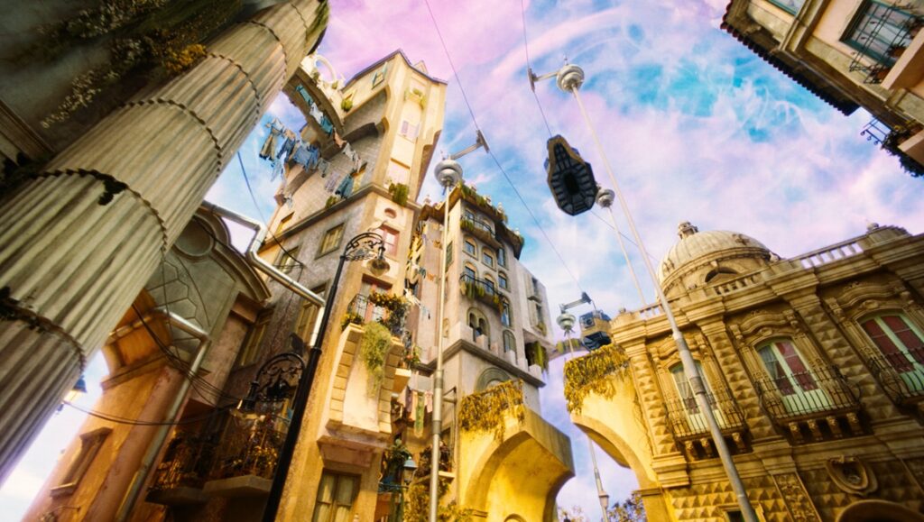 The concerns of a novel are not the same as a film, and spending too long speculating why specific changes were made in the process of adaptation often proves a fruitless and tedious task. Nevertheless, it’s striking just how much of Gray’s political content has been jettisoned by Lanthimos’ film version. Scotland is notably absent — with the story relocated from Glasgow to a fantastical rendering of London, the imperial center — and so too is the question of its relationship to the British Empire and more broadly imperialism. On a cruise ship, Bella meets the cynical English Malthusian Harry Astley (Jerrod Carmichael) and the American white supremacist Dr. Hooker, who school her on politics from their contrasting yet fundamentally colonialist perspectives. Dr. Hooker is replaced in the film by a character named Martha Von Kurtzroc (Hanna Schygulla), who, unlike Hooker, advocates for the improvement of humanity not through racist civilizing projects but through philosophy; she recommends that Bella read Goethe.