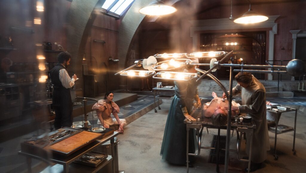 A self-styled libertine scoundrel set on freeing Bella from the shackles of Victorian moralism, Duncan is nevertheless worn down and eventually broken by her utter disregard for social convention and her insatiable sexual appetites (what she calls “furious jumping”). Bella ditches Duncan in Paris, where she winds up working in a brothel and receiving an education in sex and socialism from fellow prostitute Toinette (Suzy Bemba). After an unpleasant run-in with General Alfie Blessington (Christopher Abbott) — husband to Victoria Blessington, the woman Bella was before drowning — Bella finally makes it home to marry Max. The film ends with Bella, Max, and Toinette living a life of genuine equality under Godwin’s roof, where she is able to practice medicine and enjoy the socialist utopia she has created in miniature.