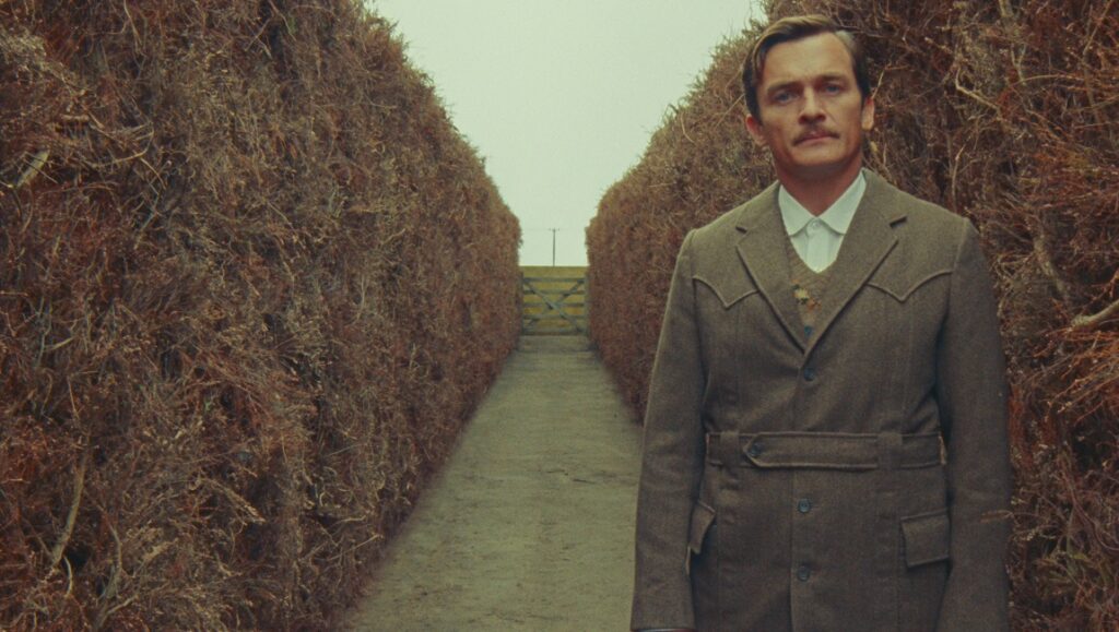 All three of these shorts see subjectivity sinuously creeping into the objective narration, but The Swan, the fourth in Anderson’s Roald Dahl anthology, deals with this the most clearly. A tale of horrific brutality, The Swan is narrated by an adult (Rupert Friend) — about a scarring bullying incident when he was a child — in the third person. He only casually reveals that the story is about him in its middle, after which he switches to third-person narration yet again. Anderson constantly undermines Friend’s deadpan narration through make-up artists entering the scene like clockwork to apply blood to the actor playing him as a child (Asa Jennings). Modernism’s famous theme of the constructive nature of memory is enmeshed with questions about the manipulation of narrative through this very device, although it must be said that this is where Anderson’s cleverness minimizes the powerful emotions in the narration — a near-death experience is rendered limply, with Anderson being more interested in questioning the veracity of the incident than the horrors associated with it in itself. It’s all the more puzzling that the most devastating scene in this anthology occurs at the end of The Swan, with the landscapes emptied of characters, leaving behind only Friend’s narration of the brutality, after which the cracking of wood blackens the entire frame and Fiennes completes the story. The impossibility of reimagining trauma and the manipulation of narration are at odds with each other in this film, and perhaps Anderson needed more than its 18-minute runtime to flesh out these themes better.