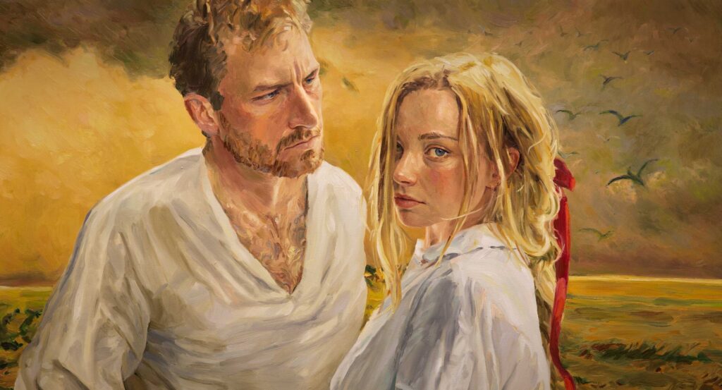 Cinema has undergone two significant, canvas-expanding innovations so far in the 21st century. The first, as ushered in especially by the films of Timur Bekmambetov and Bazelevs Company, came was the advent of screenlife. As with the introduction of sound, color, or 3-D, film art here demonstrated a new mode of presentation. The second innovation came with the paint-animation films of D.K. and Hugh Welchman. The married couple’s first painted feature film, 2017’s Loving Vincent, was a biography about the death of Vincent van Gogh, and each of the film’s 65,000+ frames was hand-painted using an oil painting technique in the artist’s own style. On average, the frames took about 2 ½ hours to paint. For The Peasants, their second paint-animation film and an adaptation of the Nobel Prize-winning Polish novel of the same name, the elaborate and detailed style, as well as the more sophisticated camera movements, made it so that each frame took roughly five hours to complete. As such, only the keyframes were painted, and then supplemented with the work of computer animation artists. The filmmaking process, which here took more than 200,000 hours of work, is, as Hugh Welchman says, “the slowest form of filmmaking anyone’s ever invented.” The labor of artistry pays off. Even if the film doesn’t work for a particular viewer, any fair-minded viewer would be hard-pressed to deny its marvel or spectacle. “They don’t make them like this anymore” is a cliché that doesn’t work with regards toThe Peasants. They never made them like this.