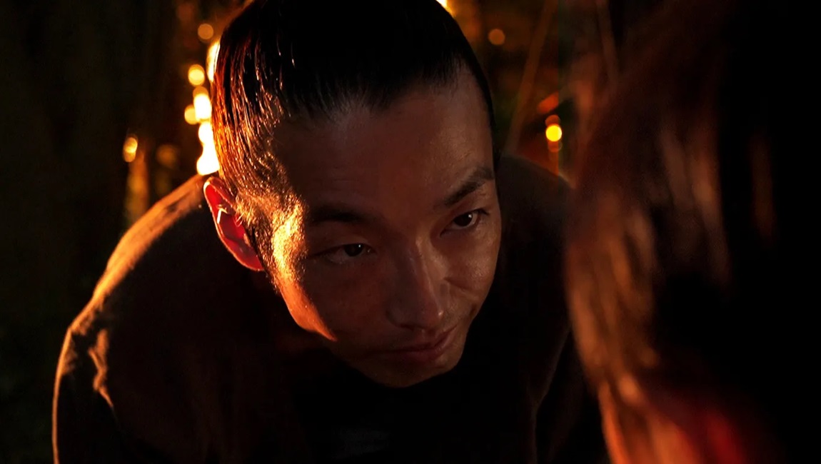 The rare Shinya Tsukamoto film to not star the director himself, Shadow of Fire is his third consecutive period piece, following Fires on the Plain (2014) and Killing (2018). The film’s confrontational nature arguably begins with its first shot, a seemingly simple image of a woman sleeping that doesn’t quite resemble other period movies. It’s smooth and shiny, an aggressively digital image that makes the ruined tavern where she lives and works into something uncanny and untextured. Fires on the Plain and Killing similarly focused on using digital to break period piece conventions, but the former took place in the last days of World War II and the latter during Japan’s Edo period. In Shadow of Fire, WWII is newly over, and the ruins of a brutalized Japan are the stage.