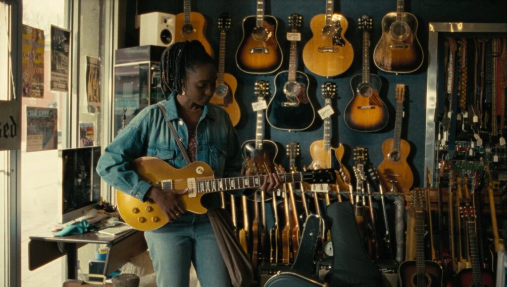 FF: I love the portraits in the film, this Do the Right Thing moment where she goes into the music store and there’s just these black-and-white photos of guys all around.