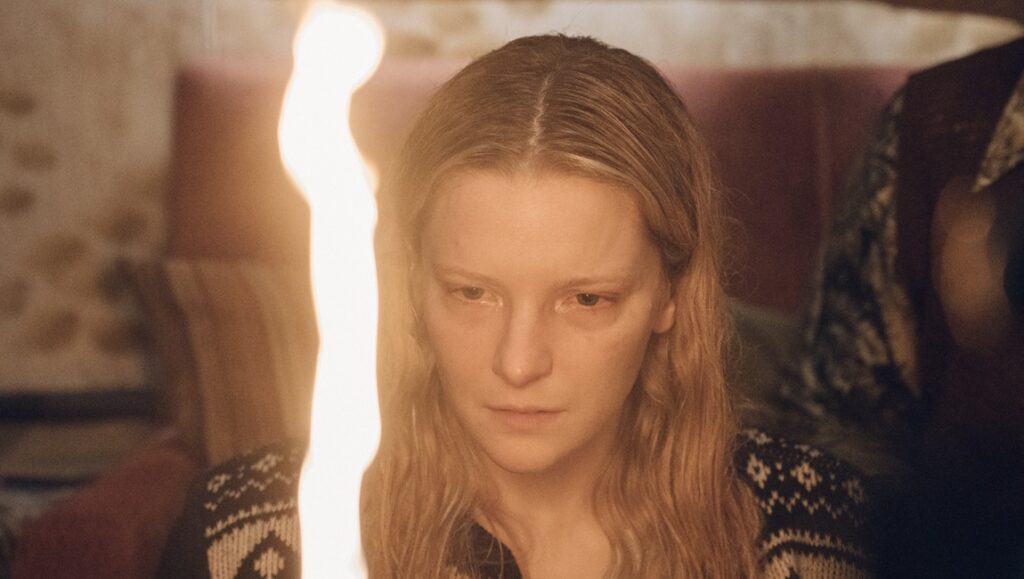 DK: Pretty much from very early on. Morfydd, she was the first person we thought of. I’d just seen Saint Maud and she was looking for new projects because she was about done with her show. I was a little bit worried she wouldn’t want to do it because she’d done a horror movie just before, but she’s a big fan of this kind of story, and loves folklore. That made it very easy for me as well. She got it from the beginning. And Matt’s a professional. I got sort of lucky with him as well — he just finished his big show. He wanted to do something like this, get on set, get on location, get his hands dirty. That was the easiest part of the whole process really, finding them, and working with them both. It being sort of dark and about grief wasn’t something I worried about. Not like on my last film, on Apostasy (2017), which was very difficult, dealing with that grief. But with this film, because it’s located in a folklore, because the trauma is passed down through a myth, it just was easier to talk about and deal with.