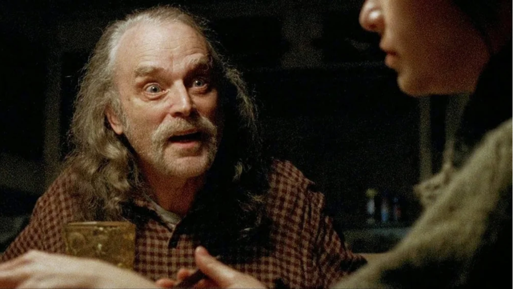 While he is exceptional in respectable dramas like Wise Blood and Ragtime, Dourif is likely associated most deeply and passionately with horror, particularly his eternal voice of the killer doll and cultural phenomenon Chucky, beginning with Child’s Play (a very scary movie) up through the character’s transmutation into a postmodern comedian in Bride of Chucky and Seed of Chucky to Don Mancini’s (Chucky’s creator) Cult of Chucky (a very fun, gory, cleverly silly work of love) and even the series Chucky, which makes a relic of the Reagan era into a profoundly modern and political symbol. Dourif’s deranged chortle rings like a powerfully-clanged bell howling its chimes across a dark town, sleepy denizens unaware of the knee-high murderer lurking in the bedrooms of babes. But beyond that franchise, consider Dourif’s brief and lingering appearances in a variety of films of different styles, different aesthetics, different tones: in each film, a different performance. (Character actors don’t often get such diversity throughout their career.) There’s Blue Velvet, where he’s just hanging out with his coterie of creeps, looking weird in a way you can’t quite articulate, with his very ’80s mismatched formal wear and short skinny tie all debased by the eeriness of the scene. He’s in Mississippi Burning, in which he is better than the film, but not incongruous with its tone, and then there’s his oleaginous role as the treacherous Wormtongue in The Lord of the Rings.