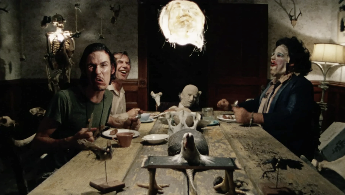 The sexual dimension of Leatherface’s rampaging is made more explicit in the film’s 1986 sequel — The Texas Chainsaw Massacre 2‘s more overt comedic tone has somewhat overshadowed the 1974 film’s jet-black humor — during a famous scene which sees him lustfully rubbing the bar of his chainsaw against a woman’s crotch as the motor sputters menacingly. The scene is a darkly hilarious fit for the riotous sequel, especially coming off what is likely the film’s best jump scare, but the first film is no less preoccupied with this aspect of Leatherface’s character as well as the family structure as a whole.