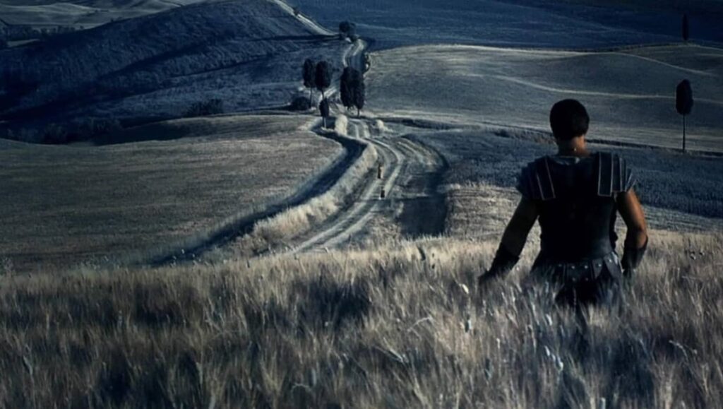 It is in the shadow of that triumphal arch that the film reaches its conclusion, in which the newly emperored Macrinus faces Lucius in single combat. We see in Macrinus something of a tragic figure, insofar as he has freed himself from his chains, only to become the master of so many other slaves. Again, it is a comment of hierarchical obliteration: it is not merely that the lowest class should take the position of the highest, but that the position is itself rotten, and must — by its nature — instigate rot. So it is in vision of this olden monument that he must be dispatched, and therefore redeem the armies of Rome from the cyclical violence they were once again prepared to commence. Scott, in his prolific tendency, has already teased some element of Gladiator III: that the new “Prince of Rome” Lucius is not likely to experience an easy rule; it seems the unwinding of such embedded power structures cannot be so instantaneous as the slaying of an emperor — time is the absolute in Shelley as much as Scott; it is time that renders palaces into ruins, and emperors into history.