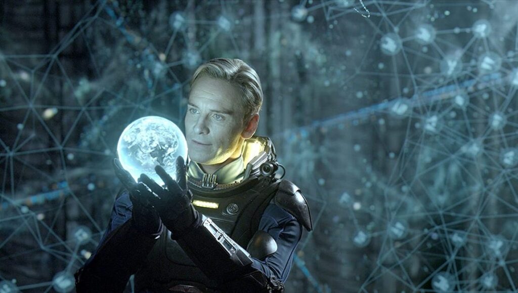 But there is, as ever, a spanner in the works. Prometheus illustrates two creation-stories: of mankind, and of some kind of proto-xenomorph. But in its midst is another, a grandsire. An invention of man. The android, David, is in the first film a servitor for his creator, but in Alien: Covenant he determines a new, inverse future. First, he kills Shaw, the protagonist of Prometheus, who might represent humanity. Then, in a flashback scene, we see that he unleashes a genocidal weapon on a settlement — or homeworld — of the Engineer species. Here is the same drama spun down a peg: the created peering up at his creators and deeming them unworthy of his service, and unable to resolve his deepest angst. His solution — as with mankind — is instead to create a new kind of life, that might supersede all else. A cyclical process of recreation; of flaws magnified and transferred; of parents disappointed with their children. The central planet of Covenant, on which a colonial mission becomes stranded, is encountered as a ruin. It is lined with colonnades of Greco-Roman pillars; there is an antiquity to its remnants, a layer of vanquished history upon an otherwise uninhabited world. We see David, the android-and-creator, peering out upon the waste. He speaks the words of Shelley, the poem here provided in full: