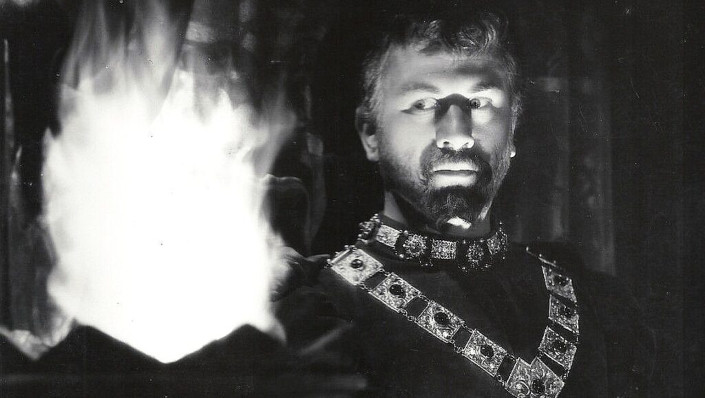 1941’s The Iron Crown was proudly made at Cinecittà, with an enormous budget relative to the pittance usually allotted for wartime productions. It’s a fairy tale, complete with a fratricidal king, a princess trapped in a castle, a prince braving danger to save her, and a series of prophecies recited by an old witch just daring the others to tempt their fate. It’s hardly what we think about when asked to picture a fascist film, but let’s look a bit closer. The prologue, presented to us as text in a bejeweled tome, recounts a story of a holy crown being transported from the Byzantium to the Pope in Rome that was lost in an unnamed kingdom along the way. The crown has the power to right historical wrongs, and, when King Sedemondo, having killed his brother and usurped his throne, learns that his brother’s son Arminio still lives, tries all he can to protect himself and his unmarried daughter. He thus hosts a tournament of strength to determine who will marry his daughter, and I’ll let you take a wild guess who wins. Bondanella describes the ambiguous fascist qualities of The Iron Crown thus: “while its message underlines a common sentiment among Italians at the time—the desire for peace and the cessation of hostilities during the Second World War—the symbolic implications of the search for a charismatic leader who will restore a magic crown to its rightful place in Rome may also point to Mussolini, Il Duce of a newly revived Rome.” The film truly does play it both ways and never quite feels like even light propaganda, though it does end with the explicitly militaristic imagery of swords, spears, and arms raised against sky.