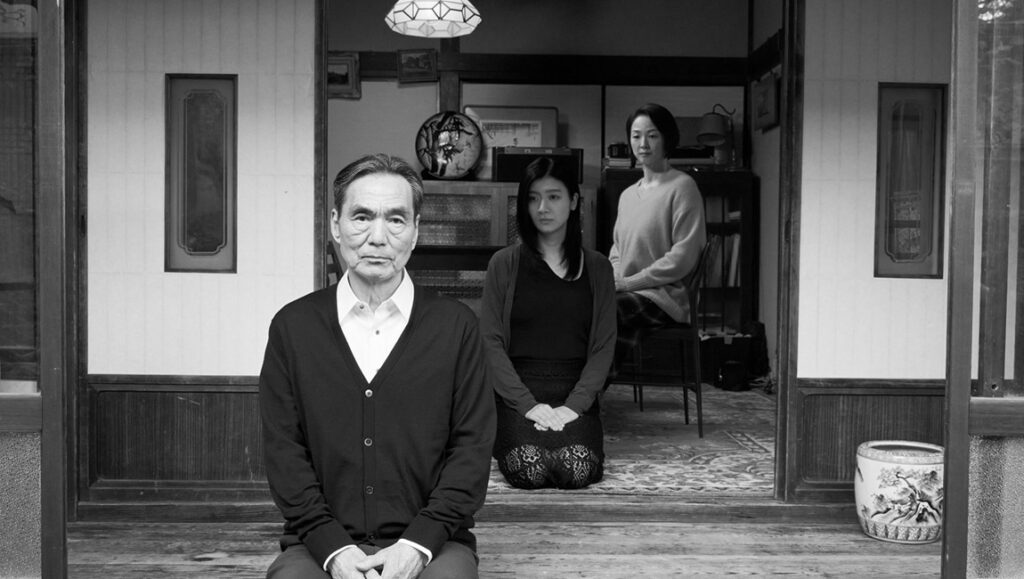 Daihachi Yoshida’s black-and-white character study Teki Cometh follows the daily routines and ruminations of retired French literature professor Gisuke Watanabe (Kyôzô Nagatsuka). Divided into four seasonal sections — beginning with summer and ending somewhat ironically with the season of renewal, spring — the film’s first third mostly depicts the widowed and existentially troubled Daihachi in solitude, quietly preparing simple meals and writing articles for a travel magazine’s culture column. As the film progresses, he interacts more frequently with the rapidly changing external world: he visits colleagues, ex-pupils, doctors, friends, and several women who occupy ambiguous spaces in his fantasies and his life: a former student (Kumi Takiuchi), a young undergraduate (Yumi Kawai), and his spectral wife (Asuka Kurosawa).